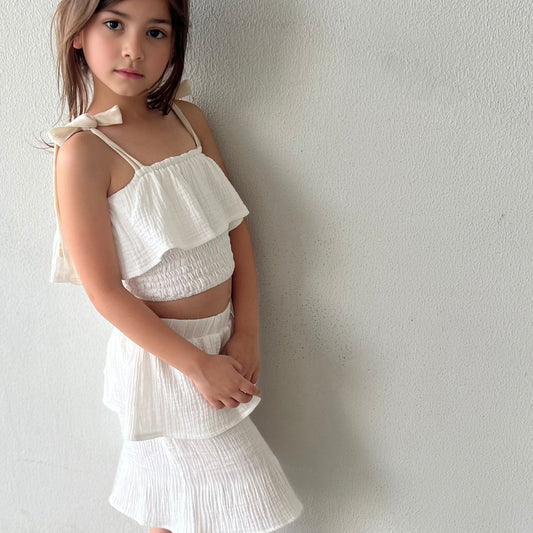 MUSLIN SET WITH CROPPED RUFFLE TOP & MID LENGTH SKIRT