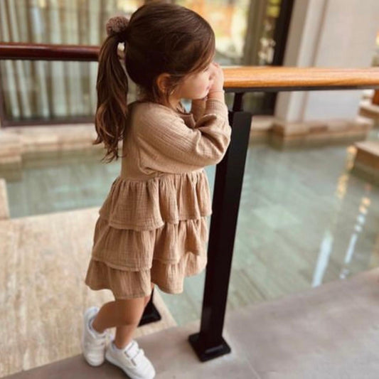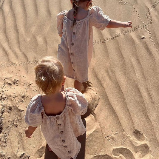 MUSLIN PUFFED SHORT SLEEVE DRESS